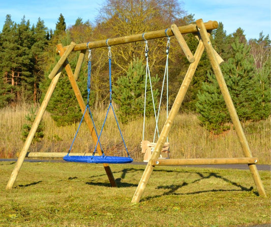 ALTALENA DOPPIA STRUTTURA DI LEGNO DI PINO TONDO IMPREGNATO SENZA SEDUTE